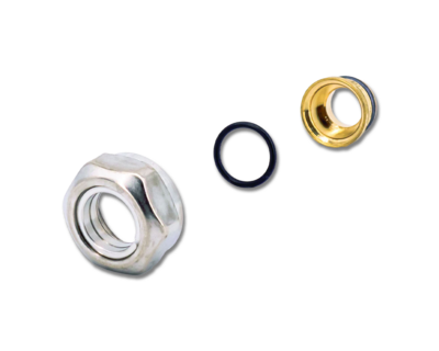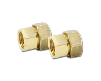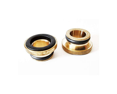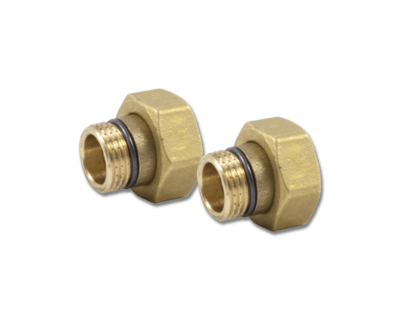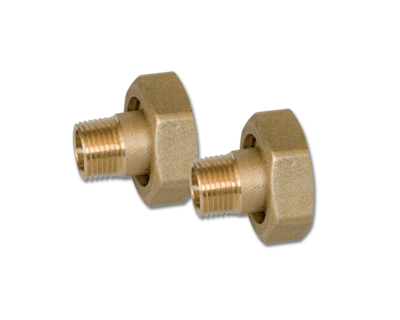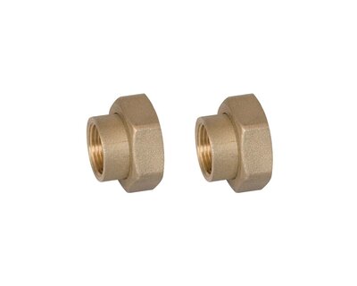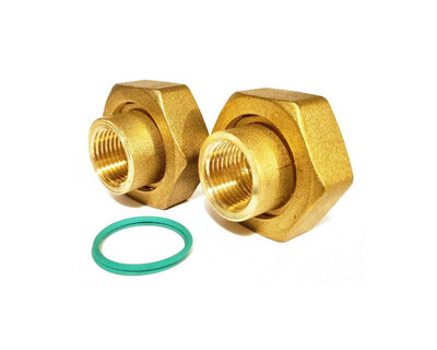 Pair of 1 1/8" union to 1/2" Female BSP, with black EPDM washer. Compatible for use on all Pettinaroli UK 80mm bypass assemblies (mains side)