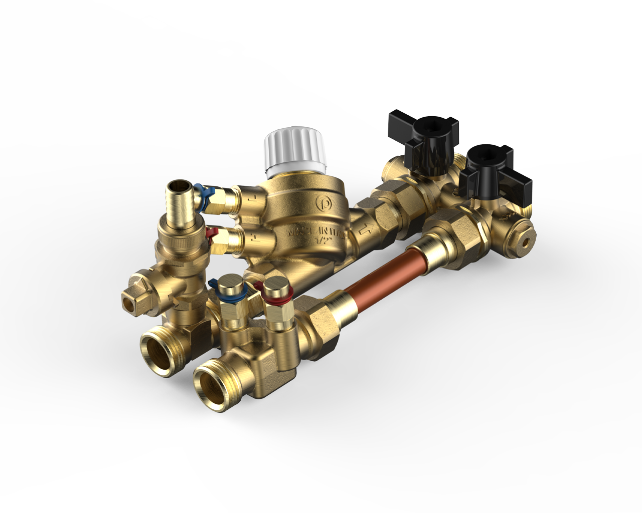 Vortex 4 40mm flushing by-pass features the highest flushing Kvs currently available on a bypass of this type, the Dynasty dirty water resistant PICV is available in both 1/2” or 3/4” for high and low flow rates and venturi flow measurement device and a full bore 10mm flushing drain mounted in the return. The set also comes with a strainer mounted in the flow leg to balance optimum flushing velocity and strainer protection. 3/4” Euroconus mains and terminal end connections as standard. Multiple handings are available.