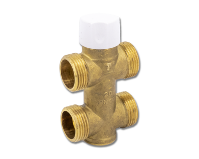 3-way control valve with in-built by-pass for fan coils. For heating and cooling applications.