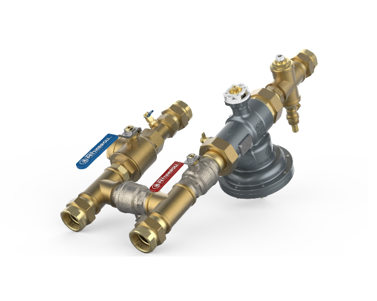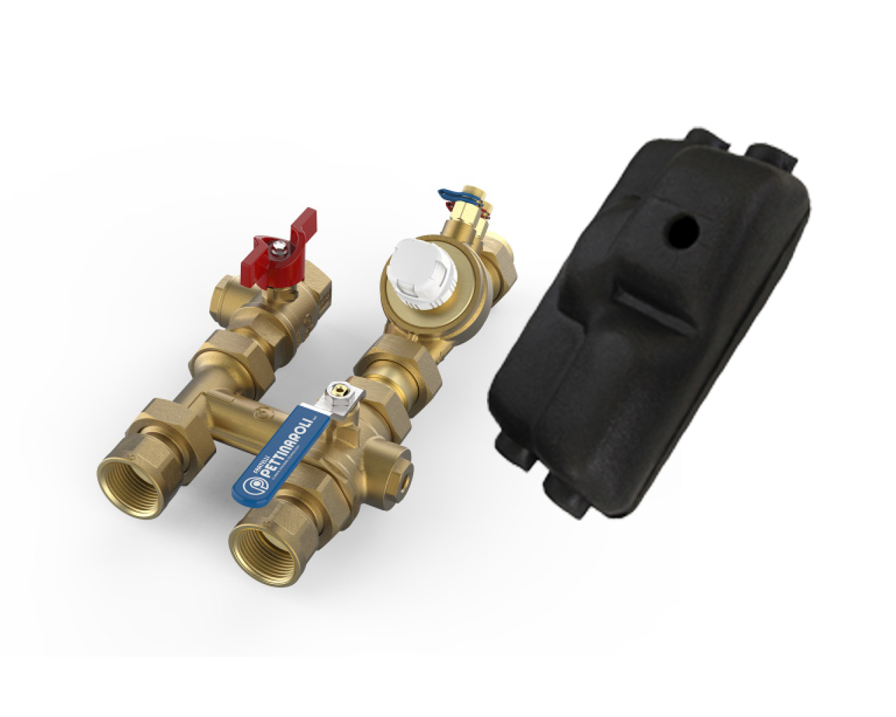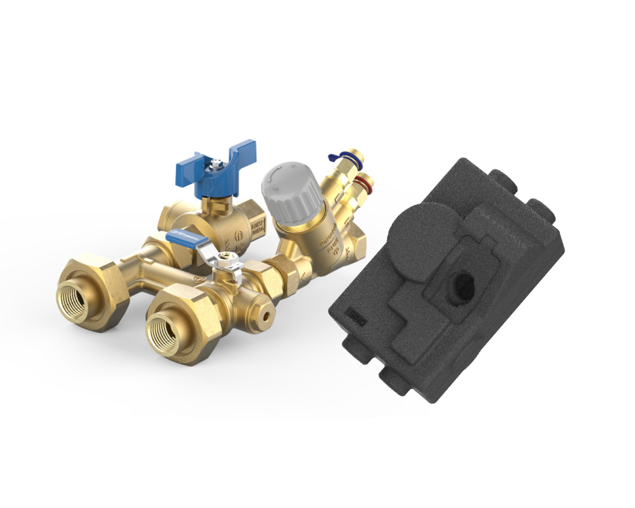 PCS preassembled valve kit, flushing by-pass (70 mm centre-to-centre) with Dynasty 92 Series PICV, FilterBall strainer / shut-off valve.