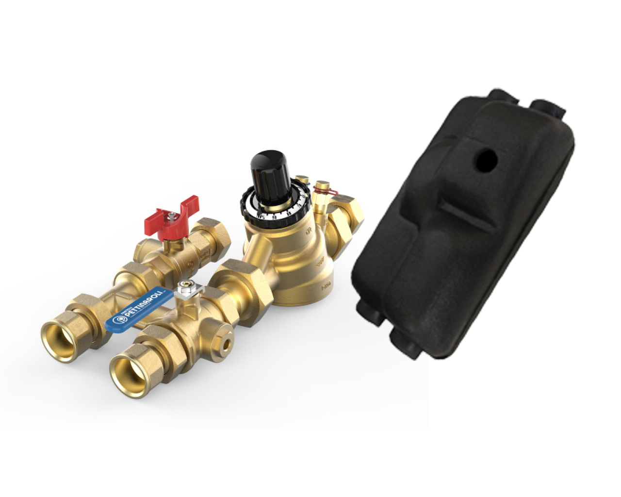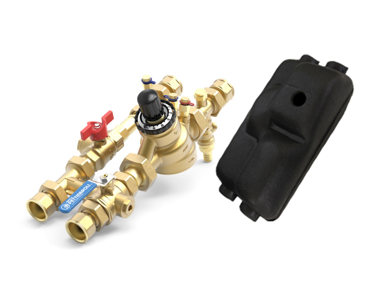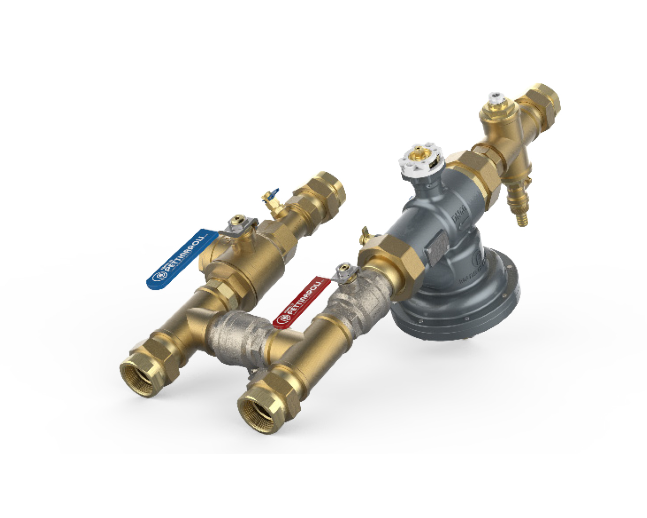 PCS preassembled valve kit, flushing by-pass (70 mm centre-to-centre) with Dynasty 92 Series PICV, FilterBall strainer / shut-off valve.