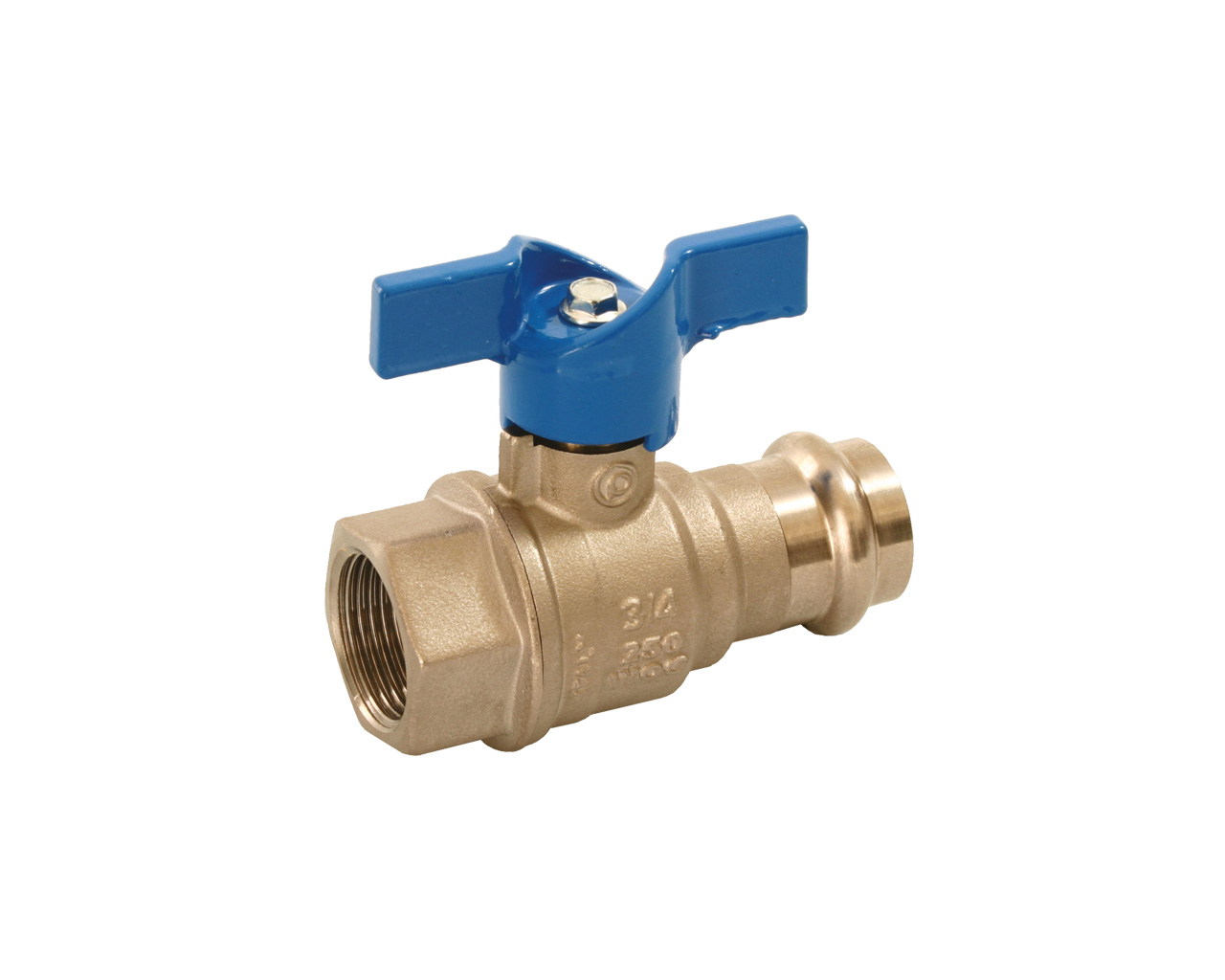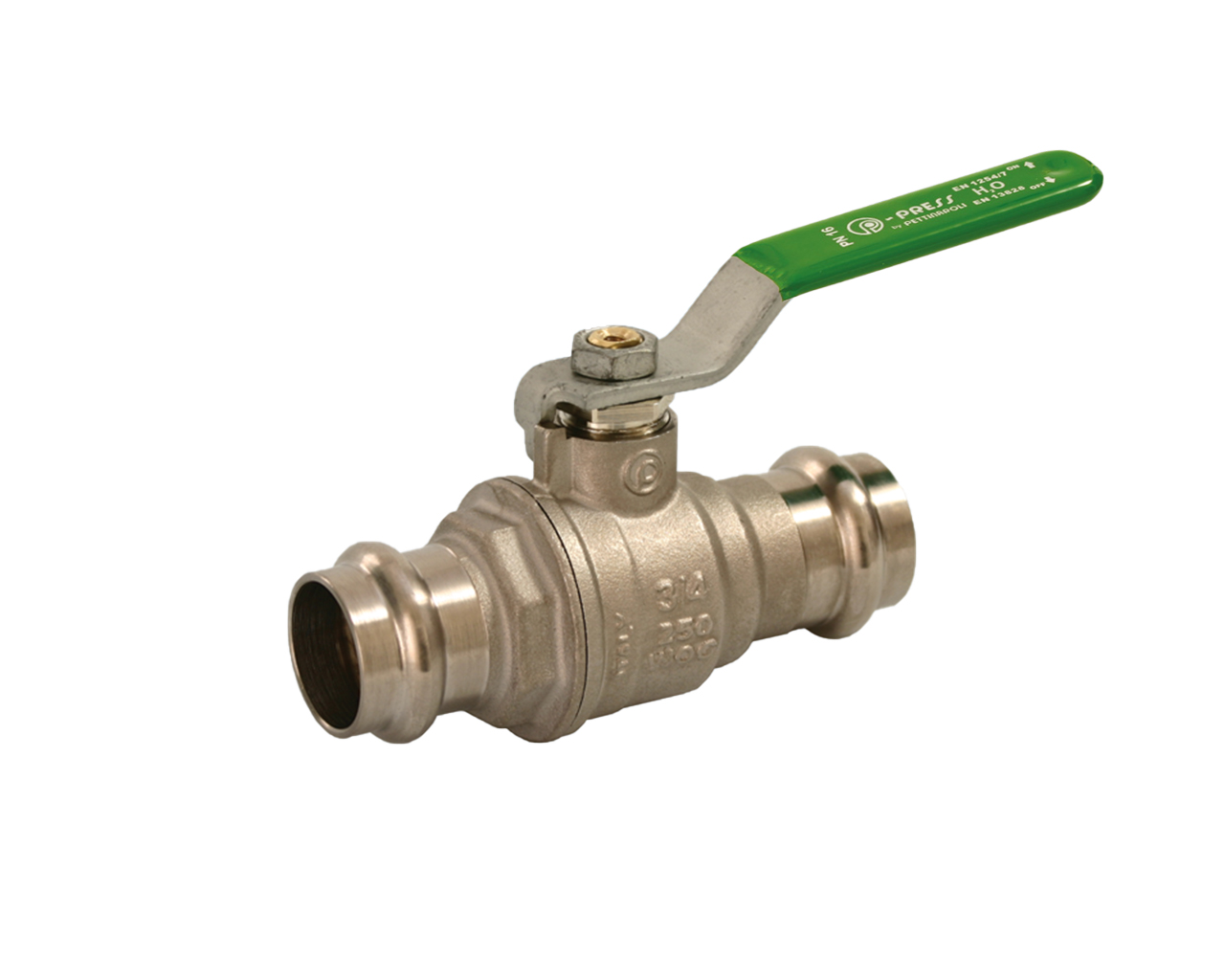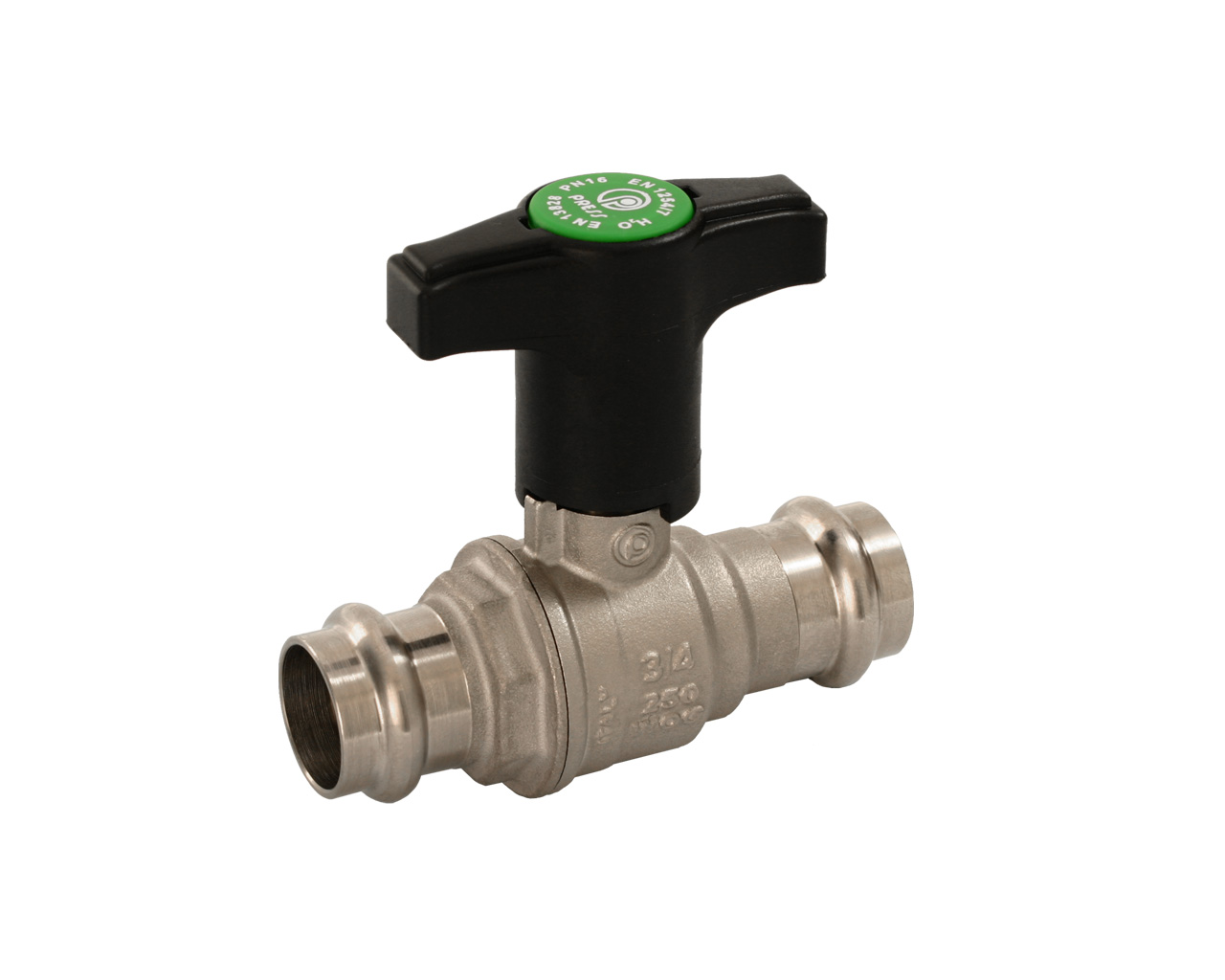 Fullway ball valve with press fitting. Extended plastic handle.