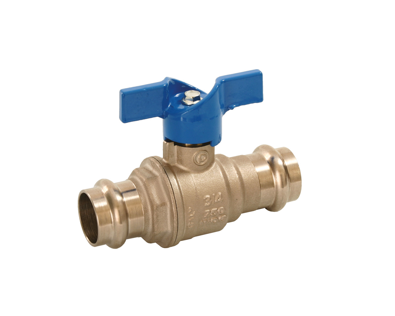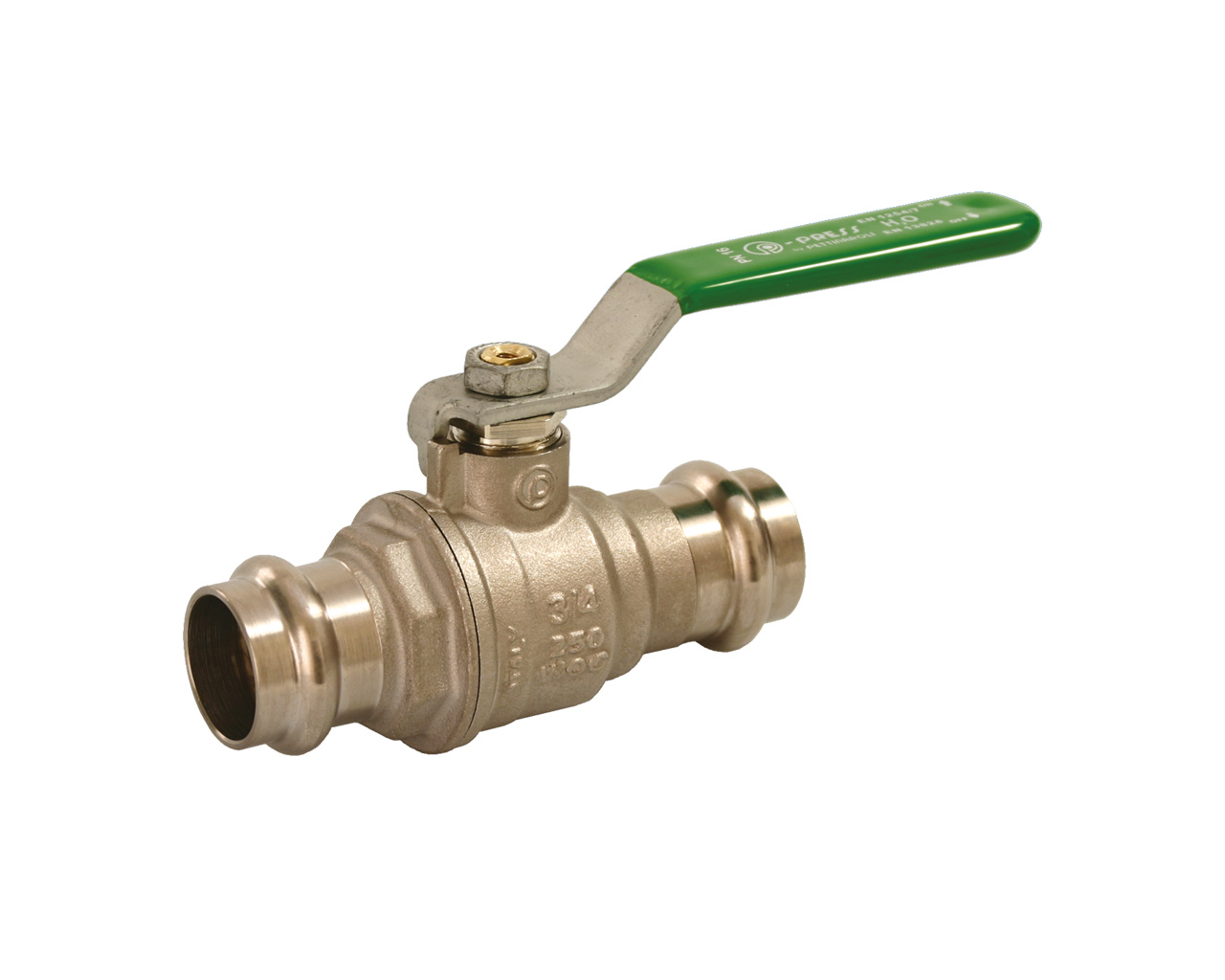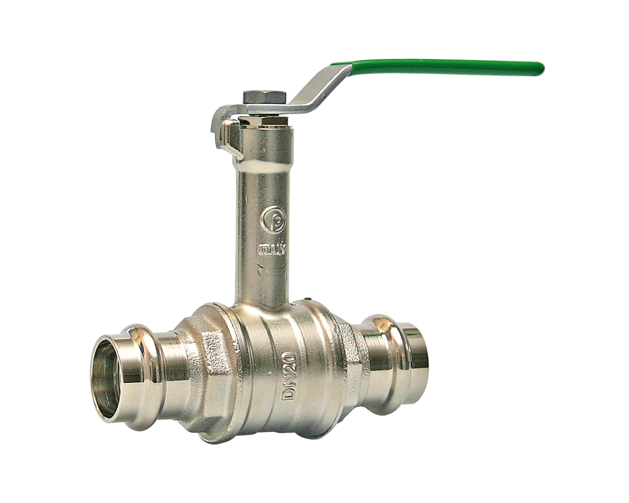 Fullway ball valve with press fitting. Extended plastic handle.