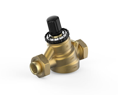 Válvula de equilibrado dinámico con característica equiporcentual compuesta de: regulador de presión diferencial, regulador de caudal y selector del…