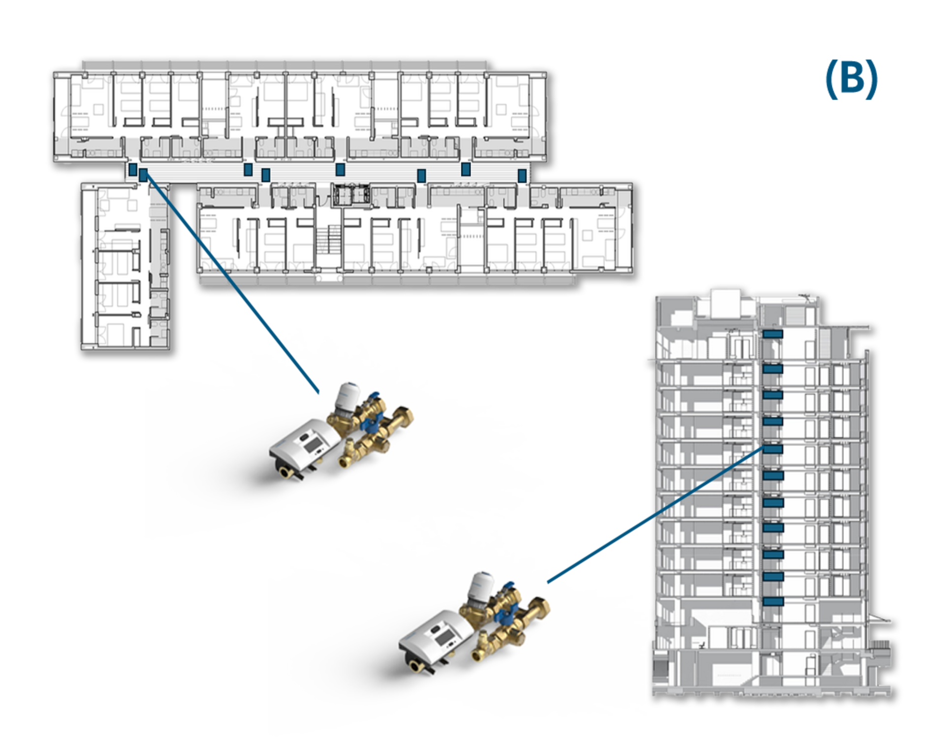 Energy Saver es la solución ideal para unidades residenciales, oficinas, centros comerciales, hospitales y todos aquellos proyectos en los que exista una doble necesidad de medición certificada de la energía térmica y de equilibrado hidráulico independiente.